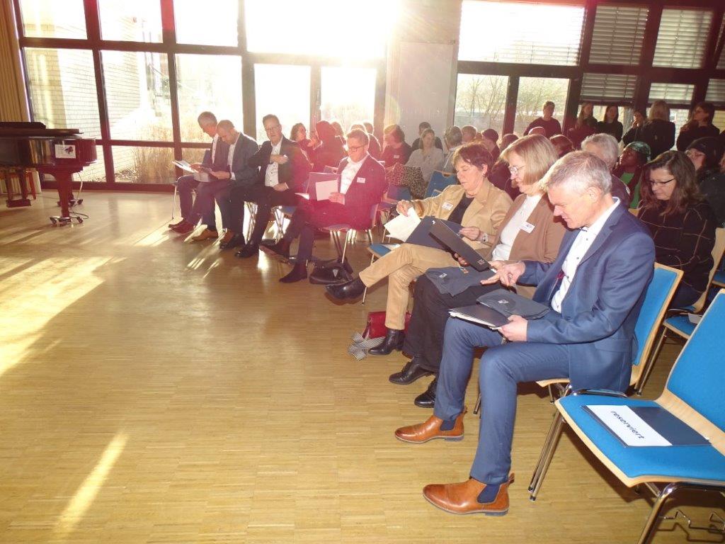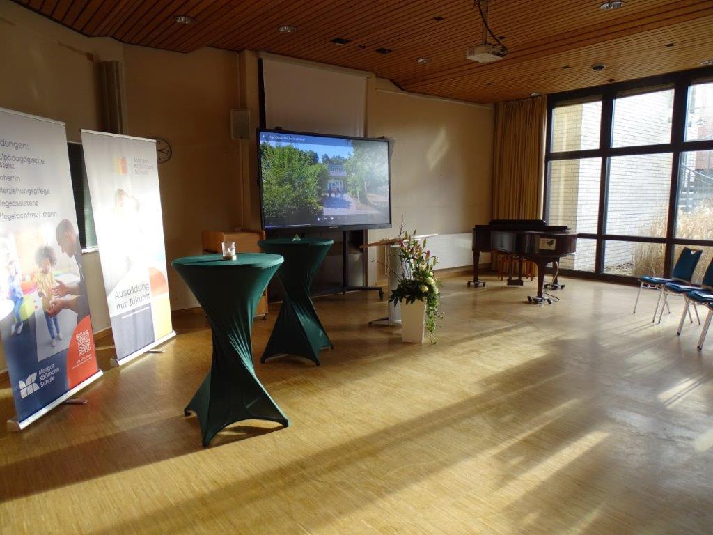 Lehrkräfte, Schüler*innen, Geschäftsführung und Gesellschafter begleiteten den Festakt mit kurzweiligen musikalischen und gesprochenen Beiträgen. Eine Talkrunde zwischen Vertreterinnen der SV und Frau Dr. Käßmann lockerte die Veranstaltung spürbar auf und spannte einen sehr persönlichen Bogen, der uns gespannt sein lässt auf den kommenden Austausch mit unserer Namensgeberin.